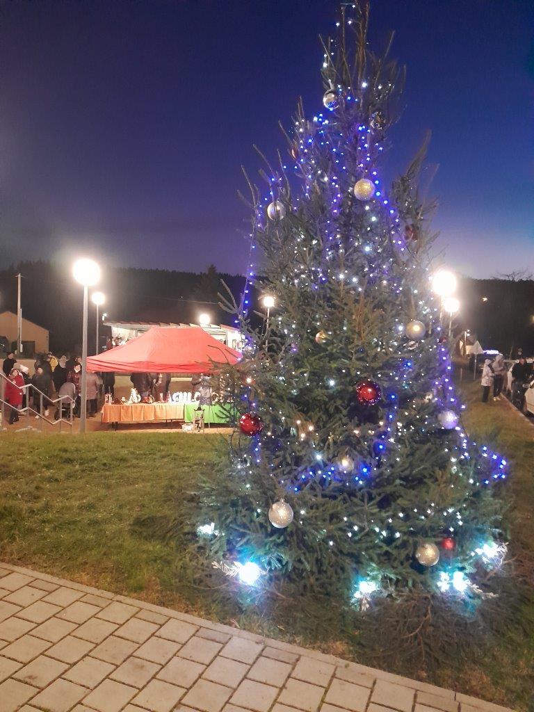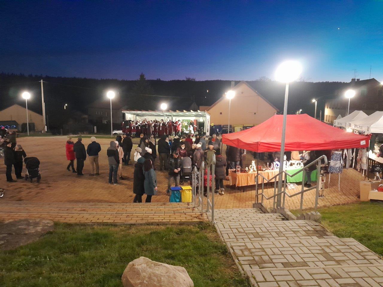 Rozsvítili jsme vánoční stromeček. Zpíval sbor Orbis Pictus z Ostrova. Medovina, cukroví, svařák...